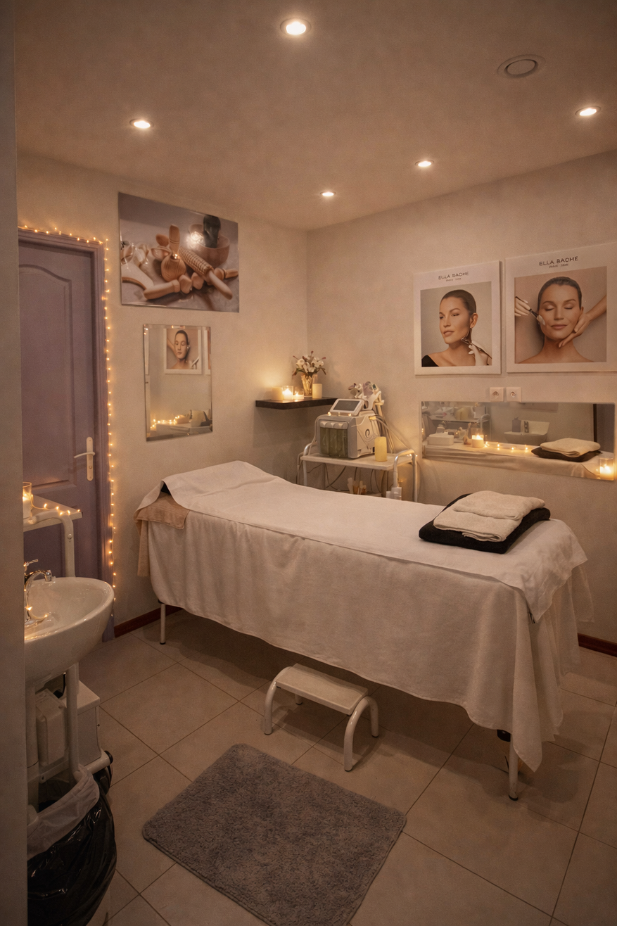 Pour sublimer votre visage, je travaille avec la marque française Ella Baché, experte en dermo-cosmétique. Soin signature Tomate Glow, à base d’actifs naturels, ravive l’éclat du teint, hydrate en profondeur et redonne à votre peau toute sa lumière.